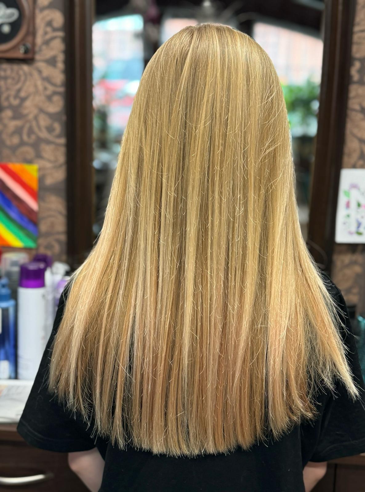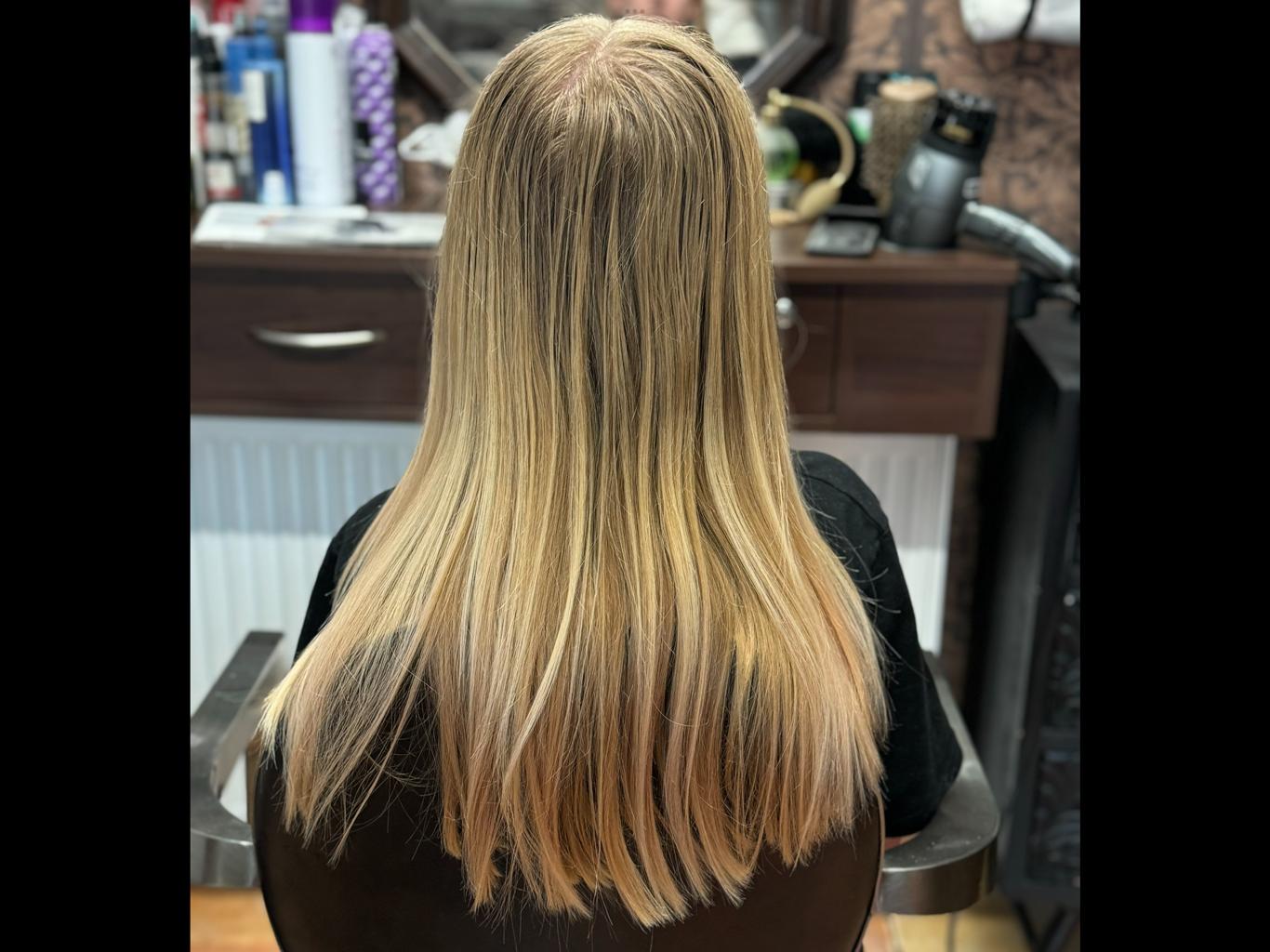 Čištění vlasů, odbarvování, zesvětlovácí techniky, melír, balayage, foilyage, mikromelír, moneypiece, včetně tónování, mytí, střihu, foukání, žehlení nebo kulmování, 2-5h